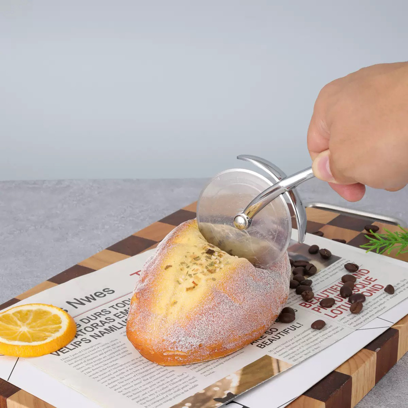 Die Verwendung dieses robusten Pizzaradschneiders aus Zinklegierung ist sehr einfach. Sie können den Pizzateig auf jede gewünschte Weise schneiden. Er ist ideal für den Einsatz in kleinen Restaurants, Familienfeiern und Campingszenarien im Freien.