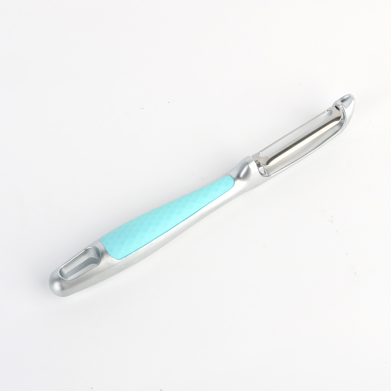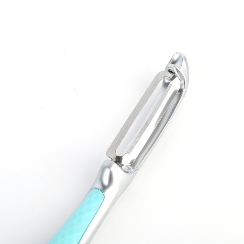 Der H542 ist eines der Angebote unseres Unternehmens, ein Schäler mit geradem Griff und geradliniger Klinge. Im Gegensatz zu herkömmlichen Designs mit geradem Griff und gekreuzter Klinge bietet dieser Schäler mit geradem Griff und gerader Klinge eine breitere Palette praktischer Anwendungen für Verbraucher und sorgt für ein umfassenderes und vielseitigeres Erlebnis. Dieser Mini-Gemüseschäler aus Zinklegierung mit hellblauem Griff ist Teil unserer Macaroon-Designserie, die sich vom traditionellen, langweiligen Image von Ess- und Küchenwerkzeugen löst. Er verbessert die visuelle und qualitative Wahrnehmung dieser Geräte Werkzeuge, wodurch sie raffinierter und hochwertiger erscheinen. Im Gegensatz zu herkömmlichen Schälern mit langen, dünnen Griffen verfügt der H542 über einen robusteren Griff. In Kombination mit den zarten Pastellfarben der Macaroon-Serie ergänzt er wunderbar das schlanke, metallische Erscheinungsbild. Dieser Mini-Gemüseschäler aus Zinklegierung strahlt ein Gefühl der Begehrlichkeit aus und hebt ihn von anderen Optionen ab.