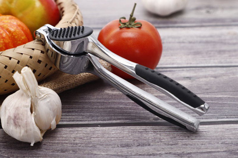 Diese Knoblauchpresse ist so konzipiert, dass sie bequem in der Hand eines Erwachsenen liegt, wodurch sie leicht und einfach zu bedienen ist und gleichzeitig einen stabilen und kraftvollen Halt bietet. Das Legierungsteil besteht aus einer hochwertigen Zinklegierung, die sorgfältig poliert und galvanisiert wurde, um eine glatte und helle Oberfläche zu schaffen. Auf der Oberfläche bildet sich eine Schutzschicht, die sie härter und fester macht. Im täglichen Gebrauch ist es sicher und umweltfreundlich, da es nicht mit Flüssigkeiten oder Lebensmitteln reagiert.
