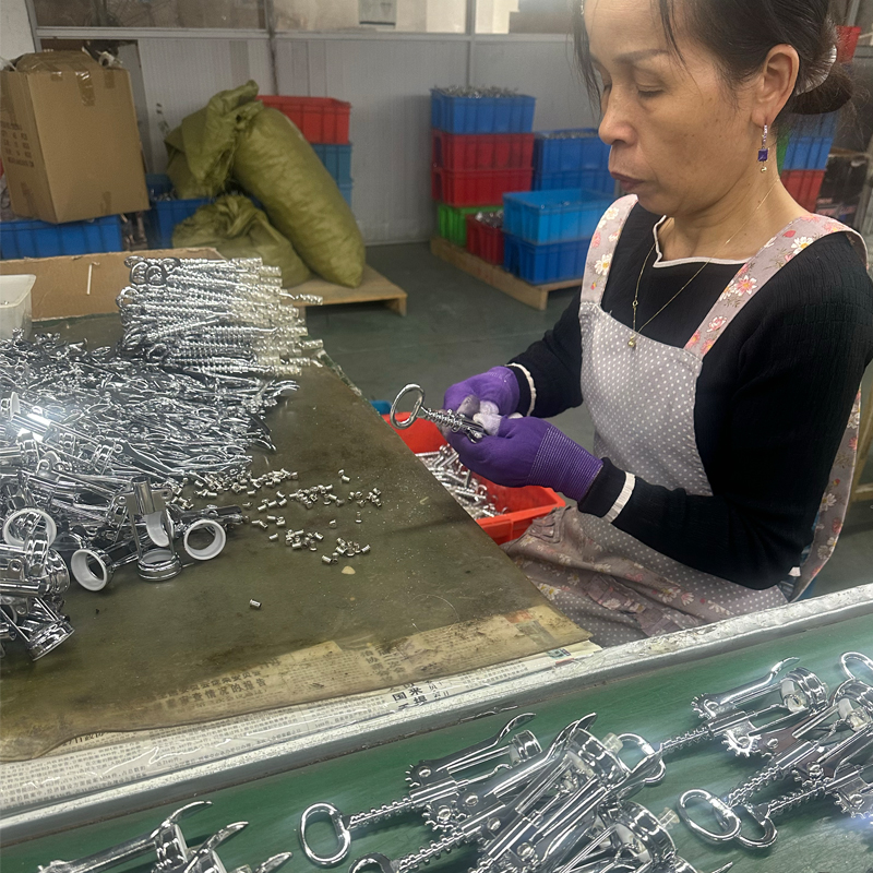 Der gesamte Korkenzieher hat seinen letzten Prozess erreicht, nämlich die Montage. Zuerst klassifizieren wir alle verarbeiteten Halbzeuge nach Komponententyp. Das Personal der Qualitätskontrolle (QC) führt vorläufige Inspektionen durch, um zu bestätigen, dass diese Halbzeuge alle Produktspezifikationen hinsichtlich Funktionalität, Farbe und Oberflächenqualität erfüllen. Qualifizierte und fehlerhafte Teile werden dann getrennt und einzeln verwaltet. Inspektionsberichte werden erstellt und sowohl an die Produktionsabteilung als auch an die Lagerabteilung übermittelt. Gemäß dem festgelegten Produktspezifikationshandbuch werden qualifizierte Halbzeuge im Lagerbestand gelagert und gelangen anschließend in die Produktion Linie für die Montage.