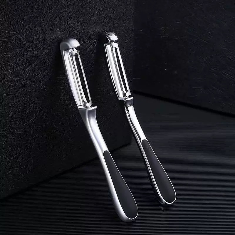 Dieser Premium-Gemüseschäler aus Zinklegierung mit gerader Klinge ist Teil einer von Hanjia entworfenen Produktreihe, zu der unter anderem Weinöffner, Eislöffel, Fleischklopfer, Nussknacker, Knoblauchpressen, Pizzamesser und Bieröffner gehören. Dieser Designstil eignet sich aufgrund seiner hervorragenden Balance zwischen Ästhetik und Funktionalität sowie seiner Kosteneffizienz gut für Haushaltswarengeschäfte, große Supermärkte und Einzelhandelsgeschäfte. Diese Serie hat bereits bedeutende Bestellungen erhalten und wurde von den Verbrauchern auf dem Markt gut angenommen, was ihre Beliebtheit und Zuverlässigkeit unter Beweis stellt.