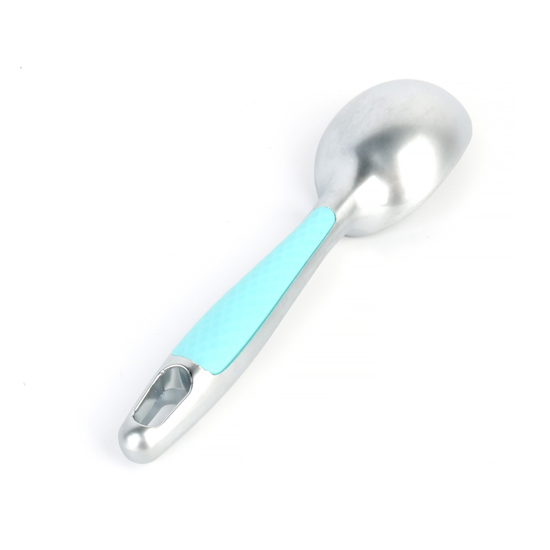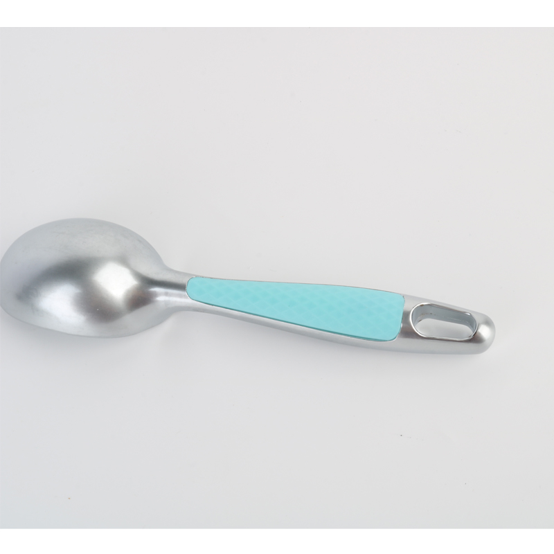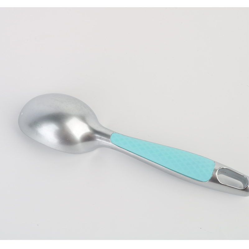 Der professionelle Eisportionierer aus Zinklegierung mit komfortablem Griff, spülmaschinenfest, wiegt 88 Gramm und ist 16,5 Zentimeter lang. Am Ende des Griffs befindet sich ein Aufhängeloch, das die Aufbewahrung und Organisation in jedem Zuhause erleichtert und gleichzeitig ein einfaches Aufhängen nach der Reinigung ermöglicht, um eine gründliche Trocknung zu gewährleisten. Wir können diesen Eisportionierer je nach Kundenwunsch in verschiedenen Farben herstellen und bieten kostenlose Muster zur Bestätigung an.
